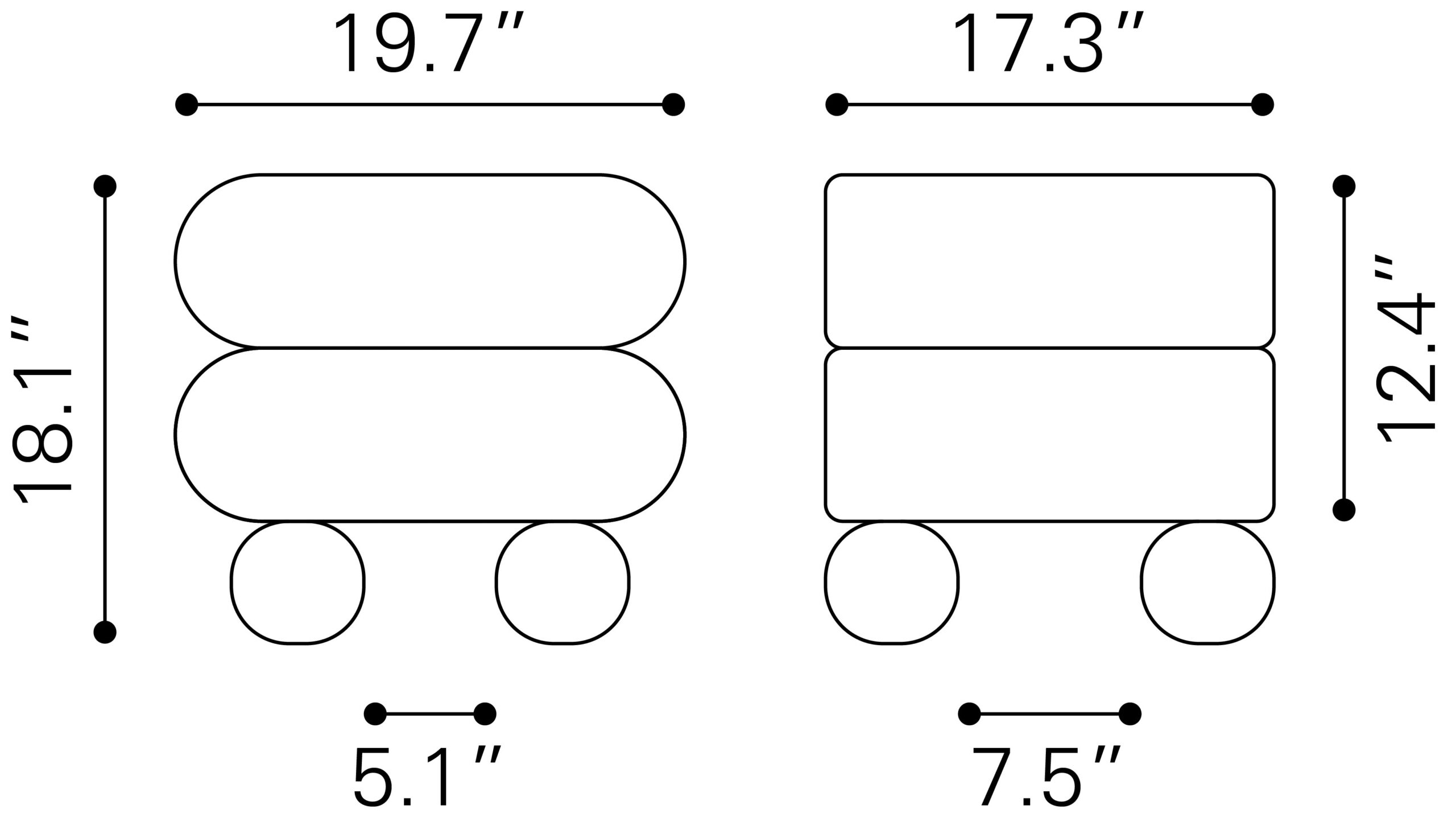 Product 1 (in) 19.7″ W x 17.3″ D x 18.1″ H